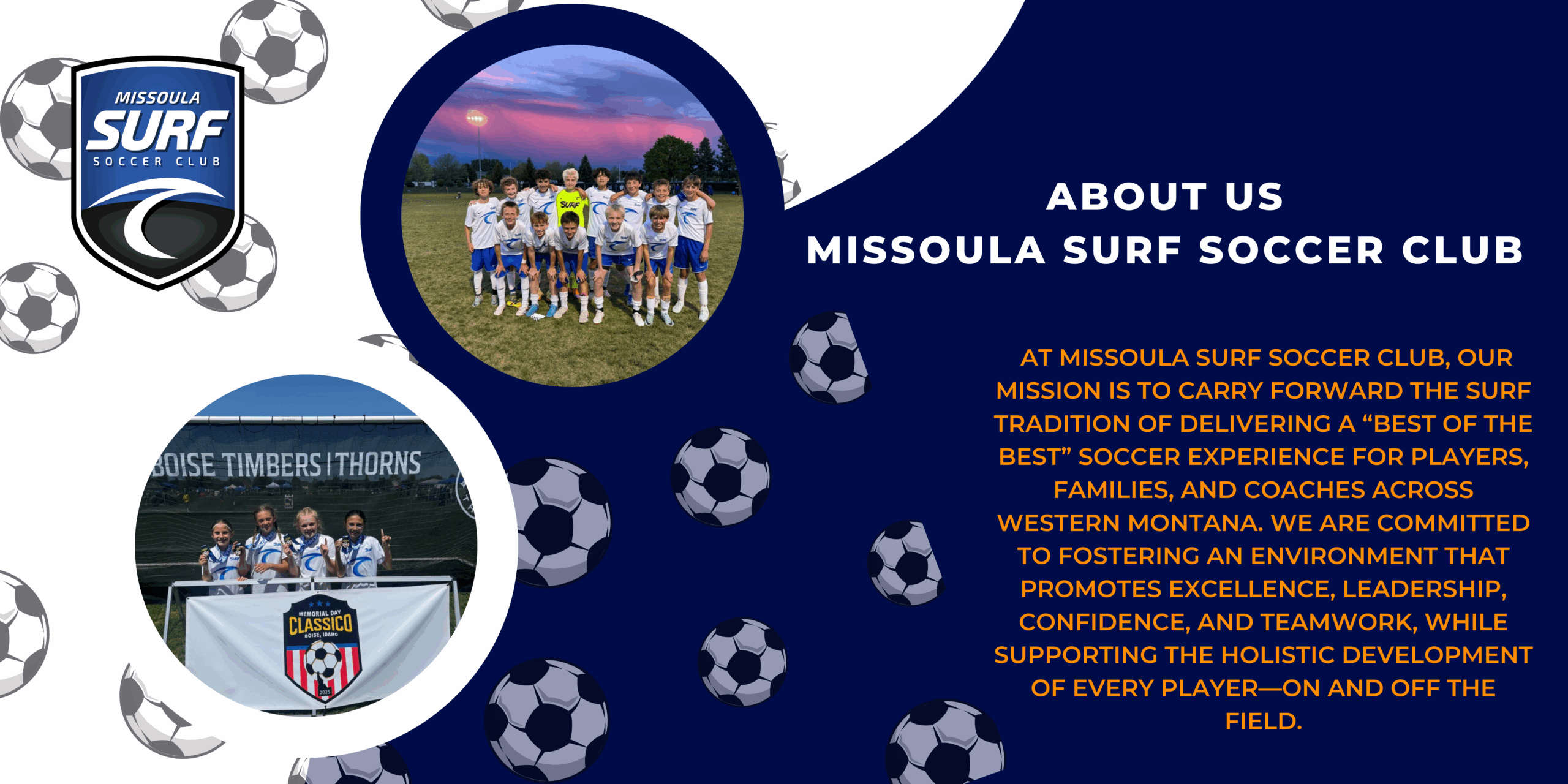 At Missoula Surf, we believe in a holistic approach to player development—one that nurtures not just the athlete, but the individual. As an affiliate of the highly successful San Diego Surf Soccer Club, we proudly implement their renowned curriculum while tailoring our training to meet the unique needs of each player in our community.